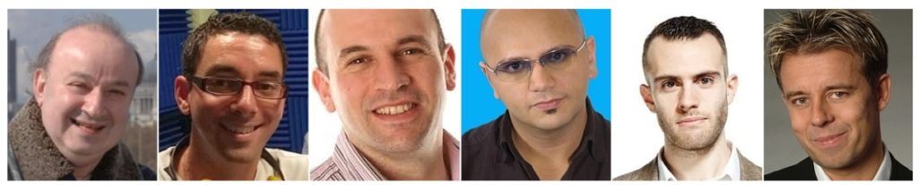 Peter Young (Radio 1), Joe Lemer (BBC Bristol), Toby Friedner (BBC Three Counties), Tushar Macwana (Heart Midlands), Simon Conway (LBC) and Pat Sharp (Capital FM).
