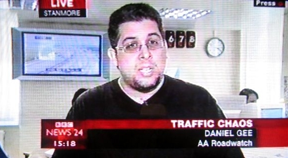 Daniel reporting live on BBC News, being interviewed about the Easter getaway